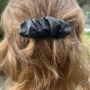 Handmade one-of-a-kind, black, leather hair clip. Hair accessory.